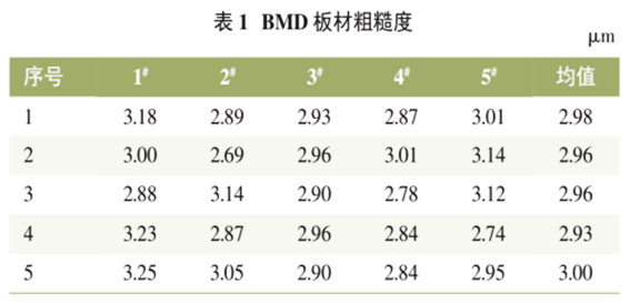 重卡車架采用水洗拋丸板,按Q/JQ16427《BMD板材電泳涂裝技術(shù)要求》,BMD 板材外觀不應(yīng)有影響電泳涂裝后的外觀質(zhì)量缺陷,不應(yīng)有影響漆膜附著力的氧化膜,表面粗糙度 Ra(0.8mm測長)要求均值3.0μm,最大值<3.5μm,涂油量5g/㎡。現(xiàn)場對(duì)BMD板材進(jìn)行外觀檢測,其中粗糙度Ra檢測數(shù)據(jù)見表1。