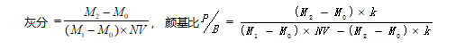 (1)操作方法:取瓷坩堝在馬弗爐中800℃灼燒后,放在干燥器中冷卻,稱重(M0),直至恒重,備用;稱取定量10g的漆樣(M1)或槽液樣于已稱量的坩鍋中;在105℃下烘干3小時,隨后在180℃下烘1小時,再在馬弗爐(800土20)℃烘0.5小時;冷卻后將坩鍋重新稱量(M2)。