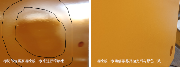 1.1 已經(jīng)下線漆膜干燥好的工件。缺陷處打磨——擦拭除塵——油漆局部噴涂修補——噴涂駁口水——干燥——檢驗(根據(jù)情況拋光處理)