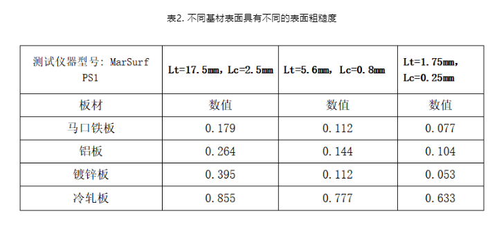 電泳底漆最終的粗糙度測試結果受到涂裝基材材質和毛坯件自身粗糙度差異性、前處理類型和質量、電泳漆質量的綜合影響。以下就粗糙度儀的不同參數(shù)下對應結果的差異性、不同基材的基材粗糙度Ra/電泳涂層粗糙度Ra。