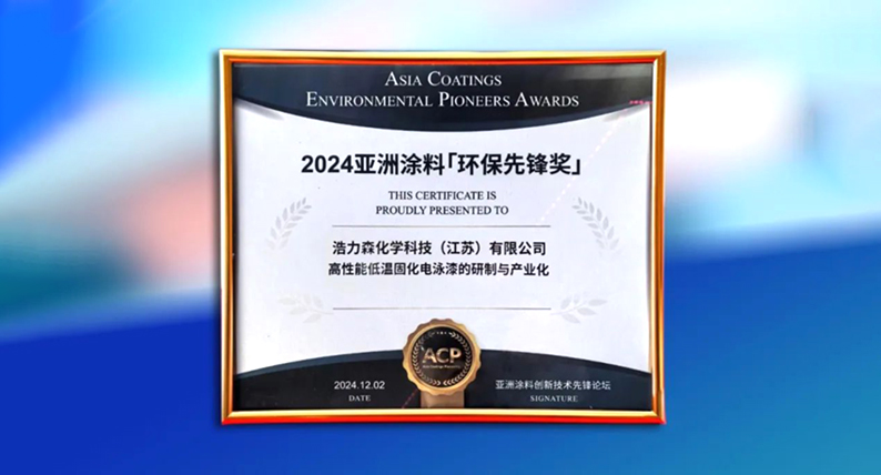 浩力森榮獲“2024亞洲涂料行業(yè)環(huán)保先鋒獎”
