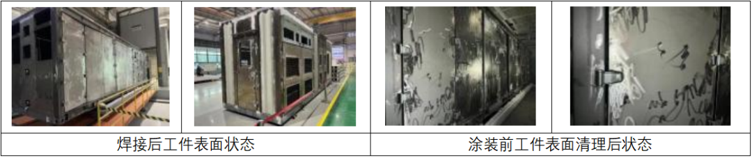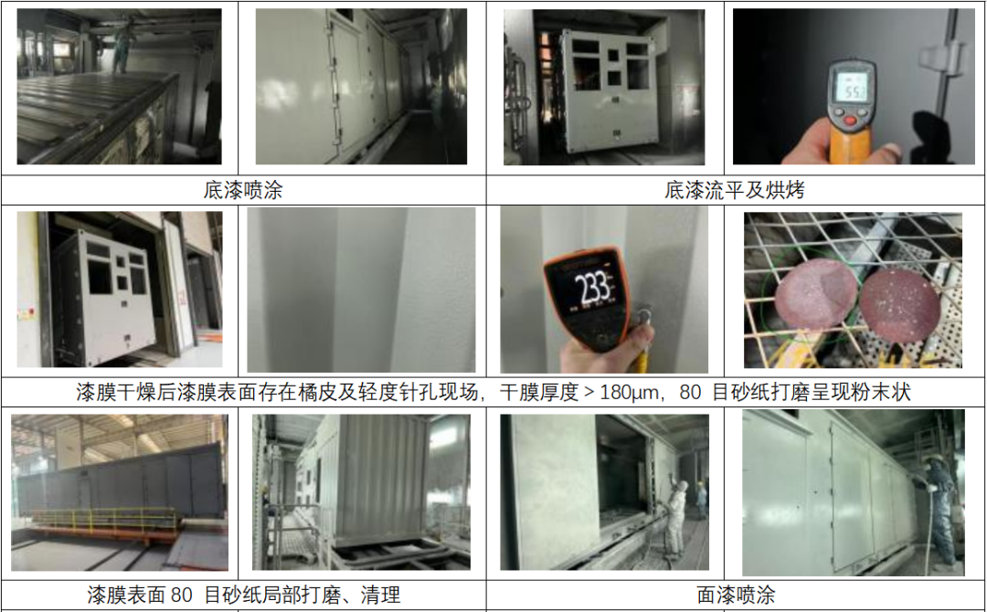 手工噴槍噴涂,箱內(nèi)外整箱噴涂; 噴槍與工件表面距離約 400mm |