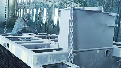 車架采用水洗拋丸后的熱軋鋼板經(jīng)沖壓、鉚接/焊接而成,車架在使用過程中條件較為惡劣,要求產(chǎn)品涂裝后具有較高的防腐蝕性能并具有短期流轉(zhuǎn)防護的耐候性能。